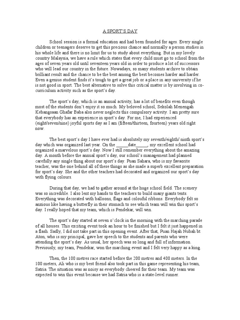 · The importance of a sports essay for class 1, 2 and 3 kids lies in the fact that sports are essential for the holistic growth of a child, and there is no better way than an essay to start the process. Kids might not understand the value of a sports essay, but they will surely learn a lot while writing one. Writing an essay is important as it · Playing sports is energy put to good use. Engaging in sports since an early age strengthens your bones and muscles and tones your body. It helps you increase your stamina and endurance. Sports that involve jumping and stretching help increase height; for example basketball. Don't use plagiarized sources Today, we are sharing a simple essay on my favourite sport blogger.com article can help the students who are looking for information about my favourite sport football in blogger.com essay is very simple and easy to remember. The level of this essay is medium so any students can write on this topic